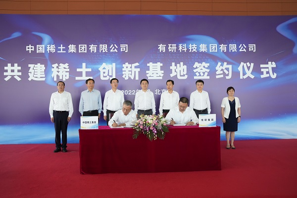 7月19日,,,,,中国稀土集团与有研集团在京签署《共建稀土立异基地合作协议》,,,,,深化稀土产研资源专业化整合,,,,,配合打造天下一流稀土科技立异平台。。。。。。国务院国资委党委委员、副主任翁杰明出席并见证合作签约。。。。。。